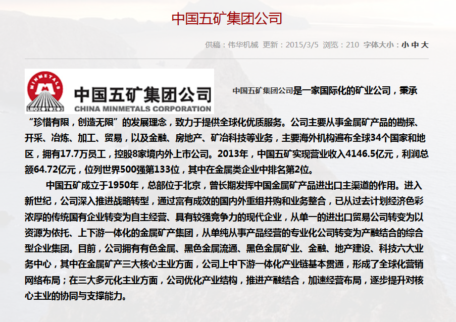 • 合作單位:中國五礦集團公司